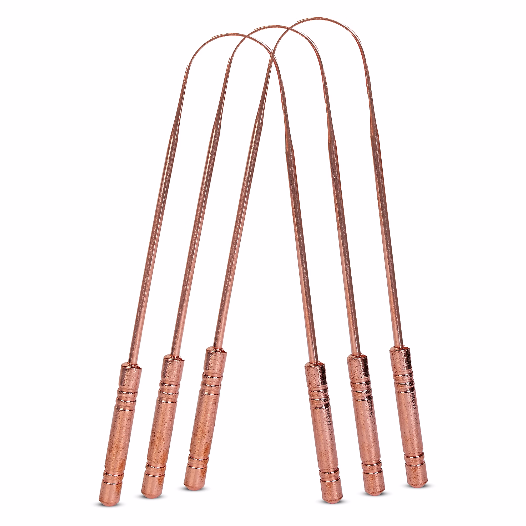 Our Premium Copper Two Handle Tongue Cleaner is designed to elevate your oral hygiene routine. The natural anti-bacterial properties of copper help in keeping your mouth fresh and clean, while the two-handle design ensures ease of use and precise cleaning.